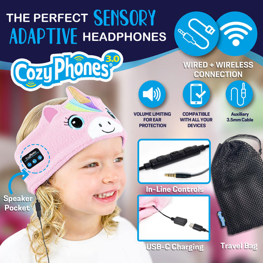 CozyPhones Sensory Adaptive Wireless / Wired Headband Headphones - Pink Unicorn